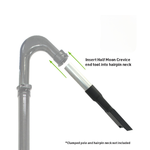 Our brand Half Moon Crevice End Tool is designed to fit into narrow gaps, and thanks to its scalloped end it has a larger vacuuming surface area, making it a breeze to lift debris in even the most cramped spaces.